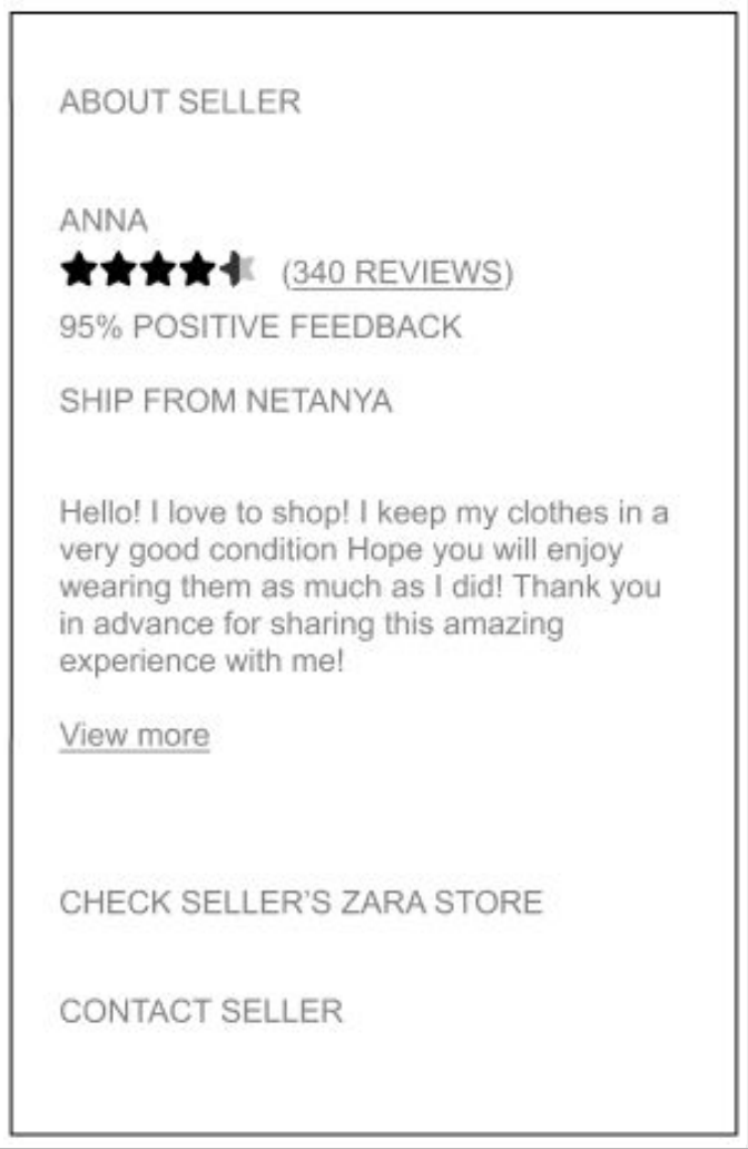 VIEW SELLER’S RATING, READ CUSTOMERS FEEDBACK, SEE SELLER’S ZARA STORE